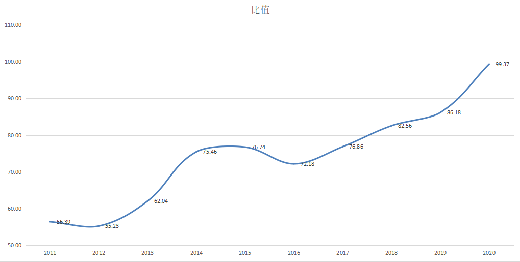2011年时,金银比价为56.39,经历第一轮上涨后,于2014年达到第一个小高峰75.46。两年后,开启第二轮上涨,从2016年的72.18,增长至2020年的99.37,即将突破100整数关口。比值的上升,代表金银出现过两种情况:上涨时,黄金涨幅大于白银;下跌时,黄金下跌低于白银。以新冠肺炎疫情期间为例,黄金自高点1703下跌至低点1451,跌幅14.8%;同期白银自高点18.93跌至低点11.28,跌幅40.41%,远远大于黄金跌幅。疫情后的反弹,黄金已经创出历史新高1764,白银最高价为18.36,还没有超过疫情之前的高点。之所以会有这种情况,是因为白银的工业属性。2011年以来,全球宏观经济都处于衰退当中,避险情绪逐步走高。单纯避险的黄金,受到利多提振不断上涨;白银虽然也会受到提振,但因为工业领域需求萎缩,造成价格上涨动力不够强劲。