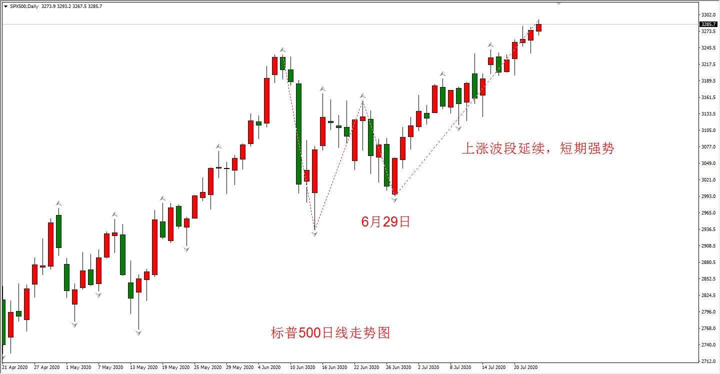 中线看多,自6月29日形成底分形支撑位,截至目前没有出现有效顶分形阻力位。上涨波段过程中出现过两个顶分形,但都被有效突破,成为中继结构。