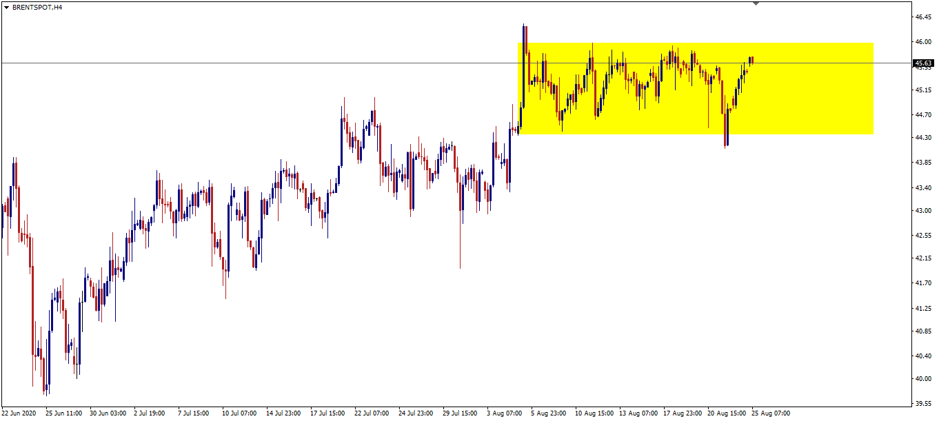 由于美国地区原油受到暴风影响,出口可能被削减,从而增加BRENT原油的销量,因此相比之下BRENT原油价格可能比WTI原油价格上升得更多。近期BRENT原油价格进入震荡区间,关注后市的市场恐慌情绪是否会发酵,若暴风或者市场情绪继续推动油价上涨,则在突破震荡区间后,进一步上涨空间将被打开。