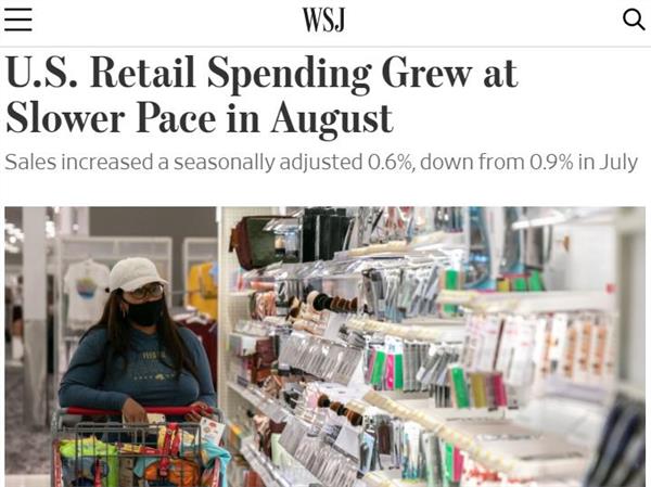 △《华尔街日报》称,美国8月零售支出增速放缓