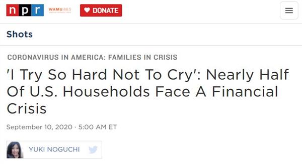 △美国全国公共广播电台(NPR)报道称,近半数的美国家庭面临财务危机
