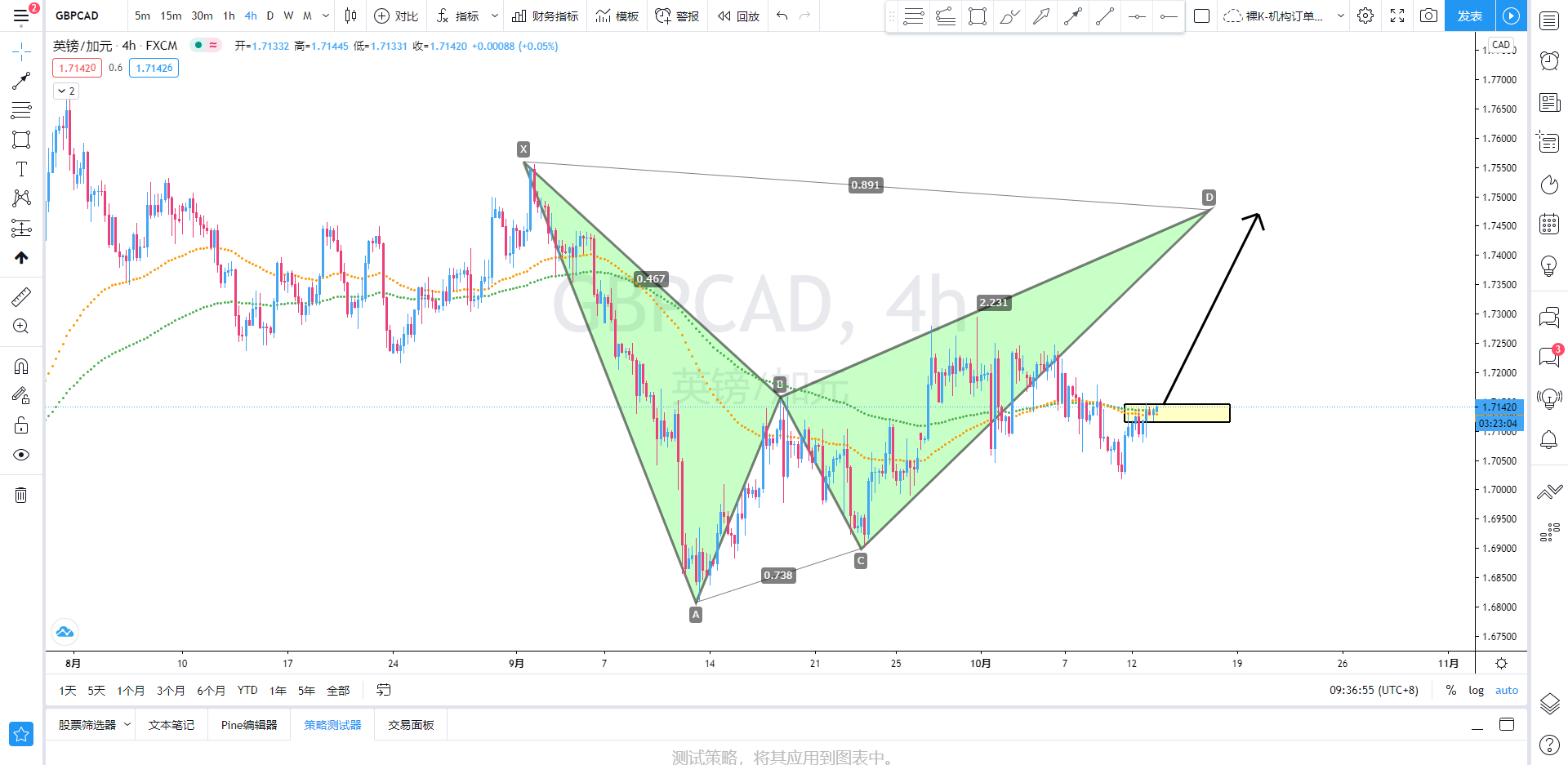 策略解析:镑加在之前的震荡下跌调整后,4小时级别开始出现企稳反转形态及走势,基本能够确认后市或将大概率展开一轮上行,相对所有非美货币中,最近几天英镑还是数一数二的强势,因此,开始布局镑加多单整体风险控制上性价比会相对较高。日内可择机直接逢低买入镑加,有效止损1.7015下方,上看目标1.7470,以期价格走势可以完成图中潜在蝙蝠模式。