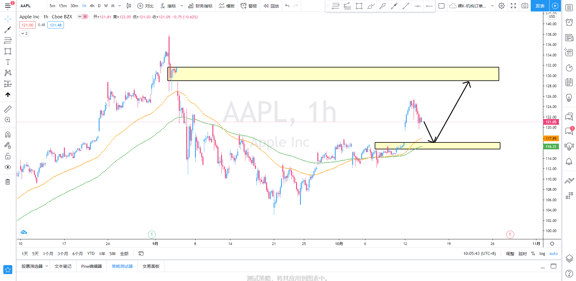 策略解析:苹果在凌晨全球发布会上公布了iPhone12,此后股价出现了下跌,但这并不影响苹果在小时周期上的上行趋势,后市或将继续回调后再次上涨。日内开始关注下方需求去和均线系统支撑的重合区域117.10-115.85,择机逢低买入苹果,上看目标先至129一线附近。