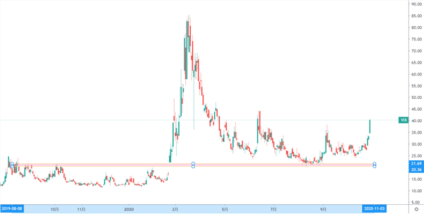 美股若想重新恢复上涨,恐怕要等到选举结果尘埃落定之后再视情况而定。今年美股几乎无法迈入双位数涨幅的时代,从股市的隐含波动率VIX恐慌指数看,2019年恐慌指数再20以下运行;但是2020年VIX指数却把20变为了底部,持续在20以上运行。VIX指标现在已经开始抬升,暗示下周美股或经历更加大的风暴。