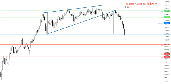 如今封锁措施重新降临,DAX30指数跌破了楔形,跌势迅速扩大,已经触及了楔形高度衡量的第一目标位11603。加载GKFXPrime的分析插件TradingCentral,下一潜在目标位置或在10840附近。