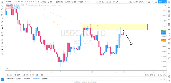 策略解析:美加价格已经来到了日线级别的供给区以及均线系统的压制位置,因此,不适合再次买入或者追多美加,这个区域只要没有被有效突破的话,那么后市美加或将反转下跌。日内关注1.3355-1.3420供给区附近择机做空美加的机会,有效止损1.3420的上方,下看第一目标1.3215一线附近。