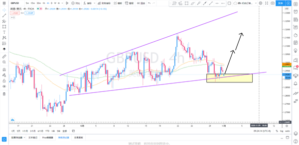 策略解析:英镑4小时级别价格再次跌至上升扩散形态的下轨,并且已经形成一个4小时级别的需求区,现在价格再次对于这个需求区进行回踩确认,那么后市只要这个回踩是真实有效的,英镑或将告别之前跌势,反转开启上行模式。日内关注价格对于需求区1.2930-1.2880的反应,可择机逢低买入英镑,有效止损1.2880的下方,依次上看目标1.3070、1.3180。