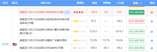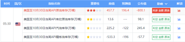 该数据 每周公布一次,北京时间周三晚间10:30(冬令时11:30)公布,此数据主要显示了美国当周原油库存数量,对于原油及原油提炼品(汽油、柴油、柏油等)有较大影响。