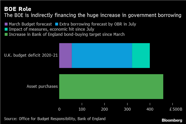 英国的QE与美国不同,英国QE的部分购买对象是英国政府的债券,相当于“印钞”给英国政府,而非企业债券市场。今年三月之后英央行新增购买了4500亿英镑的政府债券,这已经超过了2020-2021年政府财政预算。换句话说英央行“养活了”英国政府毫不为过。