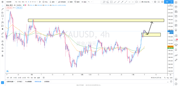 策略解析:黄金4小时走势也是非常强劲,后市或将继续上行,暂时不宜做空,但也不用积极去追涨,日内可以关注价格是否有机会回踩1950-1940区域,可择机逢低买入黄金,有效止损1940的下方,短线上看目标1980一线附近。