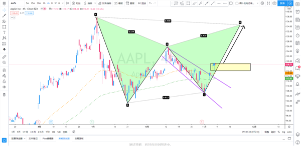 策略解析:苹果4小时级别已经强势突破下降通道,价格再次回到均线系统的上方 ,因此后市继续保持看多低买的思路。上周所提及的价格回踩已经完成,并且之后或将继续上涨,日内可直接择机逢低买入苹果,可上看目标125、135一线附近,以期后市价格能够上行并完成图中所示加特利模式。