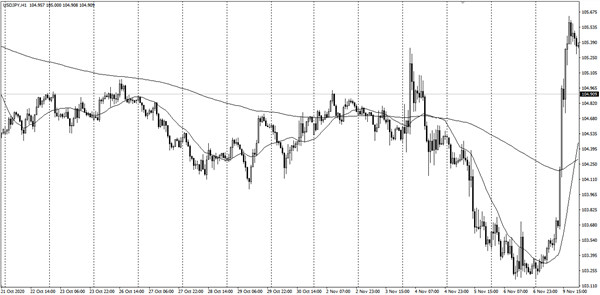(美元兑日元1小时图,来源GKFXPrime MT4)