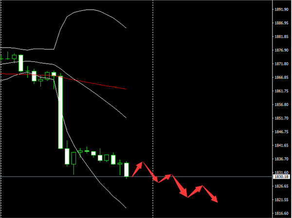 黄金:昨日金价崩盘下跌,市场急剧下跌40美金,日线以大阴线收盘,今日有望继续修复整理,但整体空头格局确立,近期金价仍有望再创新低,关注1840附近压力。由于昨日大跌,均线系统全盘破位,目前布林带中轨在1850形成压制。MACD指标转为空头,下跌动能开始显现,双线高位形成死叉,整体偏空。日内金价有望反弹回落,测试1840附近压力,高位做空为主。