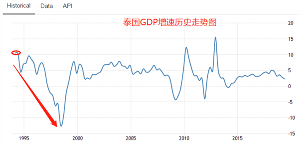 在97年金融危机之前,泰国经济发展迅猛,GDP增速在10%以上,CPI维持在5%左右,可以说是非常健康的状态。唯一值得忧虑的,是当时泰国经常账户多年保持逆差状态,且逆差幅度一度触及8.5%,远超当时的国际警戒线7.5% 。经常账户逆差,代表泰国出口不振,对国外商品依赖度较大,泰国黄金和外汇储备不断流出。此时如果泰国是浮动汇率制度,那么泰铢一定会出现大幅贬值的局面,但因为固定汇率制的存在,泰铢兑美元的汇率依旧维持在一美元可以兑换25泰铢附近。