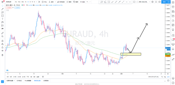 策略解析:欧澳4小时级别底部形态突破,并且价格也已经击穿站上均线系统,均线系统也开始慢慢呈现多头排列趋势,因此,后市欧澳大概率或将继续上行。日内关注价格能否有再次回踩1.6300-1.6265需求区,可择机逢低买入欧澳,有效止损1.6213下方,依次上看目标1.6480、1.6660一线附近。