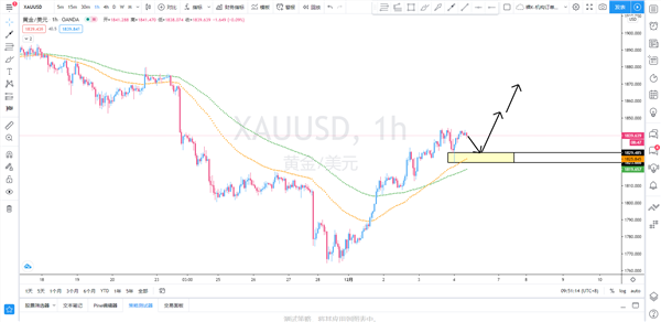 策略解析:黄金小时级别隔夜下探后继续拉升,在小时级别留出一根长长的Pinbar,均线系统现在已经转向多头排列出现金叉,因此,后市或将继续上行,依然以逢低买入思路为主。日内继续关注价格能否有再次回踩1829.55-1823.75区域的机会,可择机继续买入黄金,如果前期有底仓的话,可适当进行加仓,统一有效止损上移至1812.75下方,目标依次上看1853、1870一线附近。