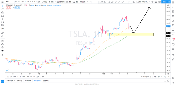 策略解析:特斯拉小时级别多头趋势继续延续,主要还是以逢低买入的思路为主。日内重点关注价格能否出现回踩570一线附近的机会,可择机逢低买入特斯拉上方目标可依次看向650、700一线附近。但是如果价格强势下跌并且跌破540一线的话,那么买入计划暂缓,可能后市需要短期转变方向为空头。