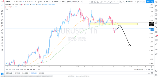 策略解析:欧元日线级别昨日收出一根看跌Pinbar形态,并且小时级别已经跌破均线系统支撑,以及出现了双顶形态的确认,因此,后市或将大概率继续下跌,继续逢高做空欧元。日内关注价格回抽1.2100-1.2110的机会,可择机逢高做空欧元,目标看向1.2000一线附近。