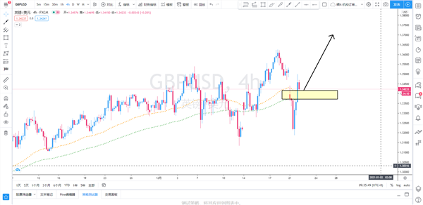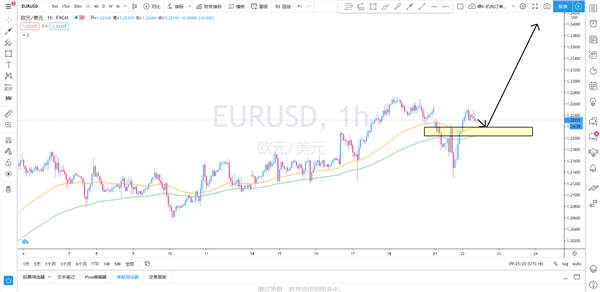策略解析:欧元隔夜走出V反形态,小时级别价格再次回到均线系统上方,大趋势看多形态并没有被破坏,因此,后市欧元或将继续上行,继续以逢低做多为主。日内关注价格能否回踩1.2220-1.2205区域,可择机逢低买入欧元,有效止损1.2129的下方,波段目标可看向1.2400一线附近。
