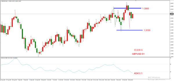 英镑的高点在创出新高,低点也在不断创出新低,处于明显的波动率增加,但趋势性降低的状态。上方阻力位1.3583,下方支撑位1.3133,当前市价处于中间位置,既不适合做空,也不适合做多,建议观望。宏观面考虑,英国疫情因为新冠变种病毒而显得非常严重,四级的管制举措让民众也非常恐慌,但这种利空性并没有体现在汇率上。英国央行目前没有进一步的货币宽松政策,这支撑着英镑在高位的运行。