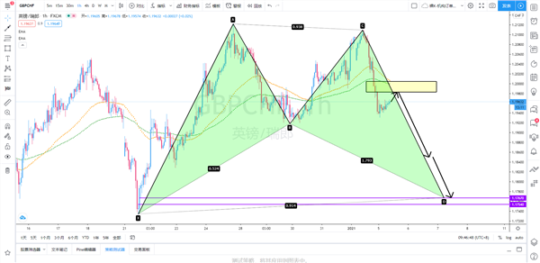策略解析:镑瑞1小时级别昨日形成一波凌厉的下跌走势,已经跌破均线系统支撑,大级别或有形成大型双顶的风险,因此,后市可逢高做空镑瑞。日内关注价格能够回抽1.1983-1.2005供给区的机会,可择机逢高做空镑瑞,下方目标看向1.1850、1.1770一线附近,以期能够完成潜在蝙蝠模式。