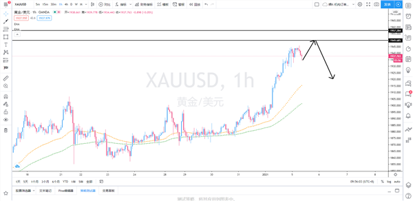 策略解析:黄金昨日一波强势拉升,价格已经快接近日线供给区,因此,不宜再去追涨,而是耐心等待抵达日线供给区后,能否出现滞涨信号,短线可做一波黄金的回调修正行情。日内关注价格触及1950之后的反应,可轻仓放空黄金,有效止损1966的上方,短线暂定下看目标1920一线附近。