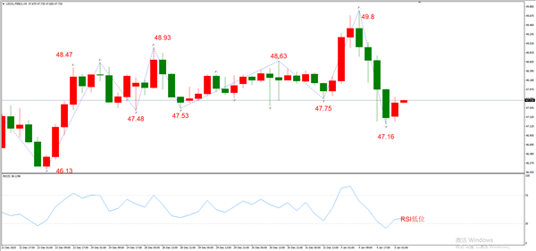 图5,USOIL 2005年2月合约,01月05日H4周期-ATFX