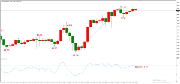 图5,USOIL 2008年2月合约,01月08日H4周期-ATFX