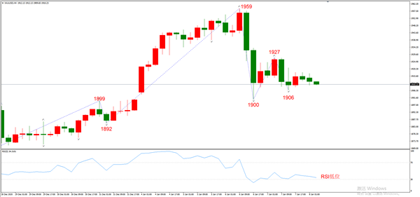 图4,XAUUSD 01月08日 H4级别-ATFX