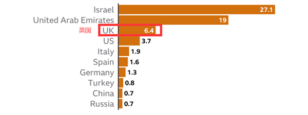 结果来看,效果是显著的。英国目前疫苗接种量按照人口比例来算,全欧洲第一,全球第三。