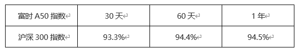表1,富时A50指数与沪深300指数相关系数汇总-ATFX
