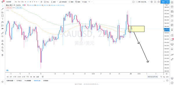 策略解析:黄金早盘也是跳空高开,但是并没有白银表现得如此强劲,而是高开低走,在2小时收线上收出一根孕线形态,由于对于之前2小时线一根长Pin Bar的理解,黄金后市或将大概率偏向于破位下行。日内关注2小时孕线1849下破做空机会,有效破位后可顺势介入黄金空头,下看目标1830、1810一线附近;如果孕线上破,与预期不符合,因此可以不进行介入,继续耐心等待下次机会。
