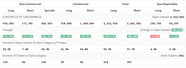 机构投资者目前以看多原油为主,COT持仓报告中原油非商业持仓呈现净多头的状况。最新的1月26日报告中净多头还增加了62151手,达到820933手。
