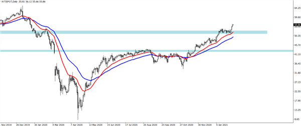 (WTISPOT日线图,来源GKFXPrime MT4)