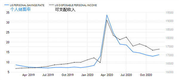 可以说目前虽然劳动力市场尚未完全复苏,但是民众如今的储蓄率和可支配收入都远高于疫情前的水平。财政刺激计划的再次实施将再次推动美股市场的上行。