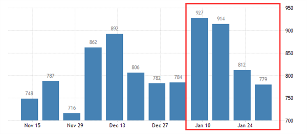 本周公布的上周美国初次申请失业金的人数也显示下跌趋势,该数据已经连续三周录得降低,这表明美国劳动力市场继续从新冠疫情下缓慢复苏。