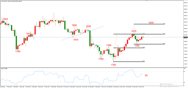综合判断:上行,短期目标位1815,长期目标位1835。