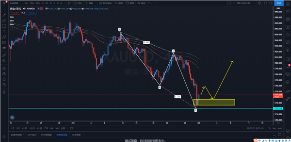 策略解析:黄金4小时级别AB=CD模式完成,随后收出4小时级别孕线形态,价格现在已经出现4小时级别孕线上破,同时形成需求区,在大级别周期下,黄金或将告别跌势出现反转,日内起可开始逢低布局黄金多头。关注价格再次回踩1736-1726需求区的机会,择机逢低买入黄金,上看目标1803甚至更高。