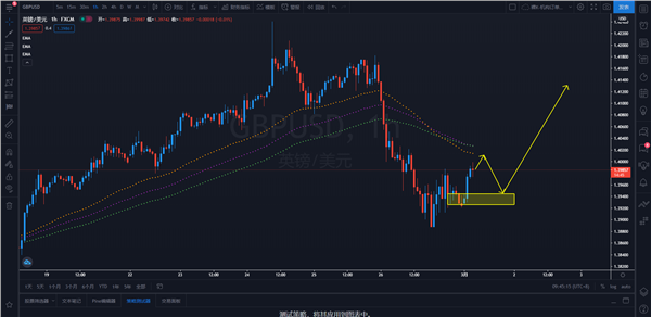 策略解析:英镑与欧元的走势相对来说较强一些,已经在小时级别出现筑定双底形态走势,从整体K线运行的形态及情况来说,虽然双底形态还未得到进一步有效确认,但是大概率或将结束回调,继续延续上行趋势,并且可能在不久之后将会出现新高,因此,可以开始逢低布局英镑多单。关注价格之后回踩1.3945-1.3925需求区的机会,可择机逢低买入英镑,上看目标1.4130甚至更高。