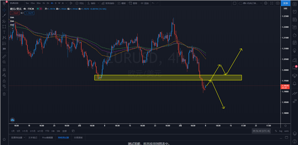 策略解析:欧元价格大跌之后,短期内或将有反弹需求,关注4小时级别1.19530-1.1976供给区,此供给区为最近的多空风水岭,如果价格继续再此下方承压,那么可继续择机逢高做空,目标1.1820一线附近;若价格可以有效突破这个供给区,那么还会继续反弹上行,或将涨至1.2100一线附近。
