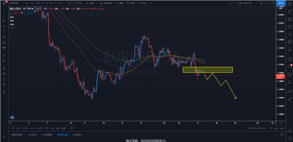 策略解析:欧元小时级别价格再次回到均线系统下方,反弹或将结束,继续延续下跌趋势。日内关注价格再次回抽上方1.1900-1.1914供给区的机会,可择机逢高做空欧元,下看目标1.1840一线附近甚至更低。