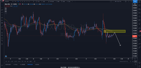 策略解析:黄金30分钟级别隔夜出现冲高回落的V反走势,后市或将继续在一定范围内来回震荡,短线可能回抽修正后继续刷出新低,保持逢高做空思路。日内关注价格再次回抽1730.65-1732.50供给区的机会,可择机逢高做空黄金,下看目标1720一线附近。