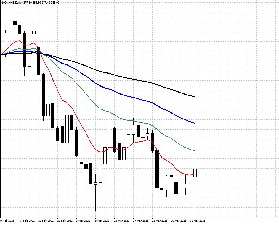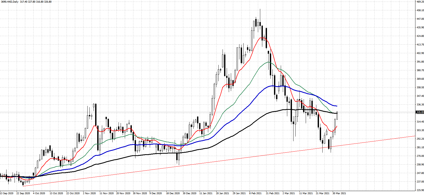 技术面上已经跌到本专栏前期分析的280底部区间,这一位置可以短线做多。但是要注意,长期看美团股价向上空间不大。