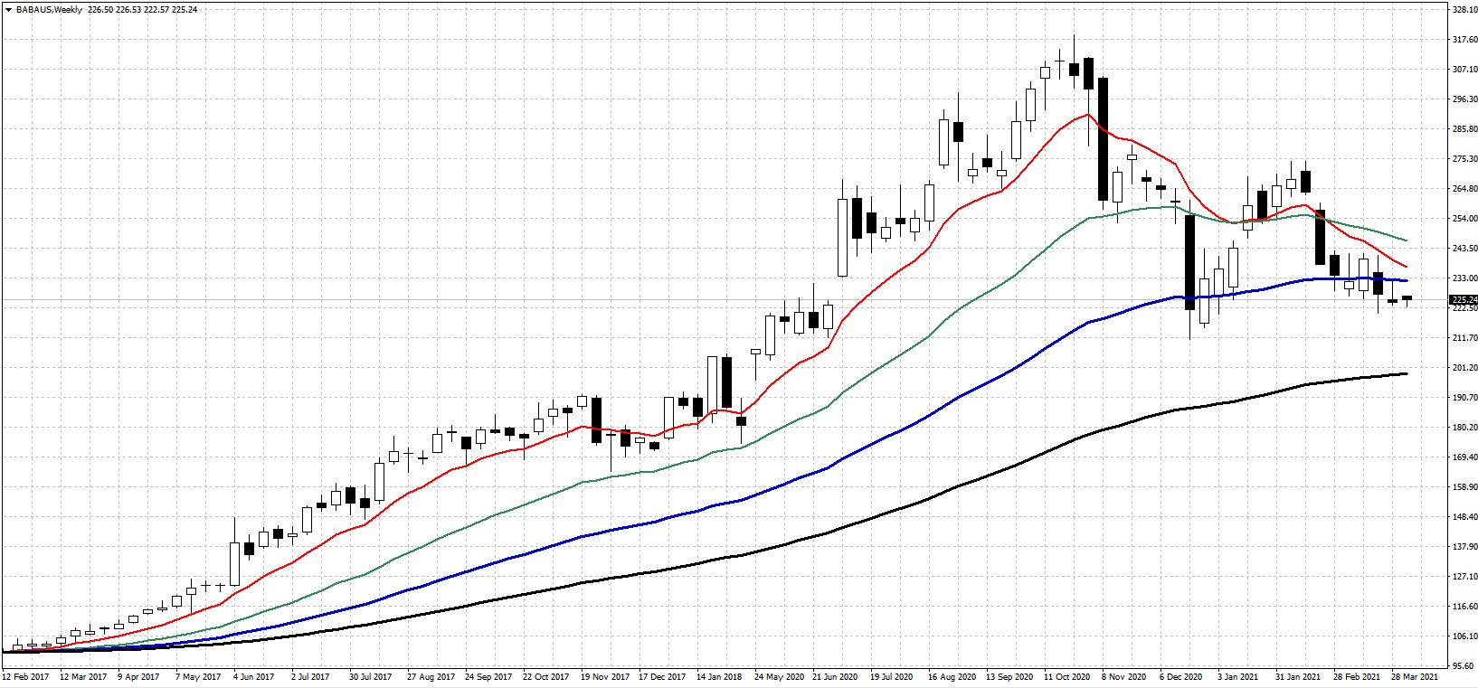 技术面上,周线图上分析,继续回落到200美元的趋势很明显。