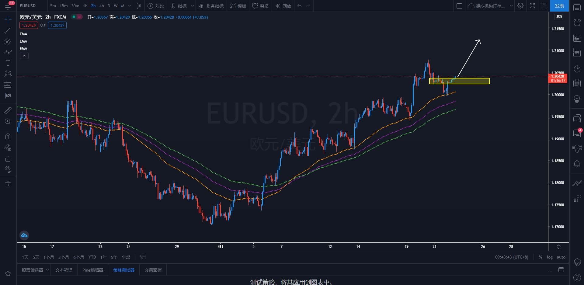 策略解析:欧元2小时级别价格继续保持在均线系统上方运行,后市或将可能继续延续上行趋势。日内关注价格再次回踩1.2040-1.2025区域附近的机会,可择机逢低买入欧元,上看目标1.2125一线附近。