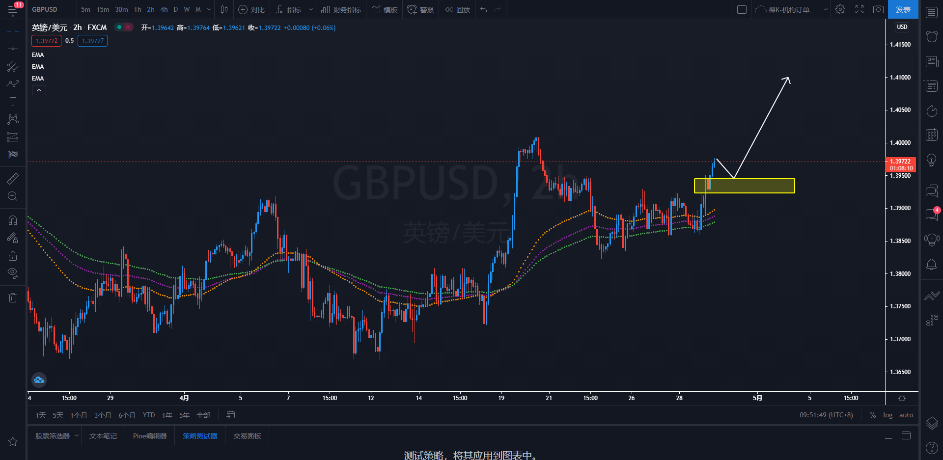 策略解析:英镑2小时级别价格继续保持在均线系统上方运行,上行走势节奏完好,后市或将继续上行,继续保持逢低买入的思路为主。日内关注价格再次回踩1.3945-1.3923需求区的机会,可择机逢低买入英镑,上看目标1.4100一线附近。