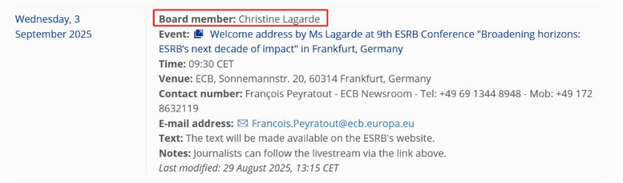本周三15:30,欧洲央行行长拉加德将在德国法兰克福的ESRB年会上致开幕词,重点关注其对宏观经济和货币政策路径的看法。ESRB全称为 European Systemic Risk Board,直译为欧洲系统性风险委员会。本次会议是ESRB的第九届年会,主题为“下一个10年的影响”,持续一天时间。如果拉加德在本次会议上发表关于美国的关税政策、欧央行的货币政策、欧盟对乌克兰的政策内容,可能会对欧元汇率产生显著冲击。