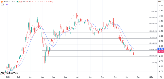 ATFX港股:小米集团(01810)昨日公布第三季度业绩,电动汽车及AI等创新业务首次实现单季经营盈利成为亮点,经调整净利润同比大增80.9%创新高,业绩整体超市场预期。不过今日小米股价低开低走,技术面处于尝试寻底的状态。