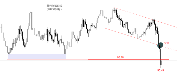 1月19日至今,七个完整交易日,美元指数只有一个交易日收阳线,其余均为大幅度阴K线。美元指数从最高点99.47猛跌至最低95.49,显著拉跌了市场人士此前对美元指数“触底反弹”的预期。