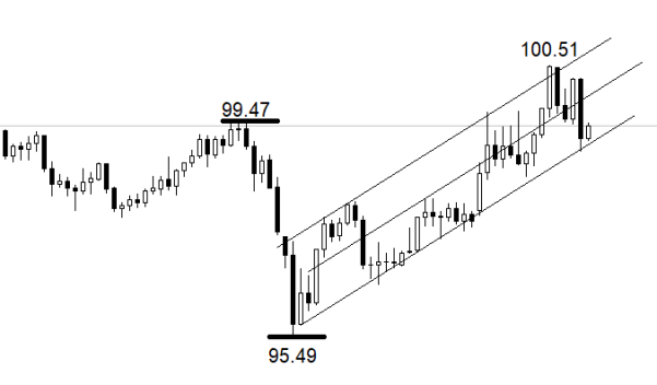 行情方面,美元指数运行于图中上涨通道内部,市价触及下轨后有反弹迹象,意味着通道支撑作用有效。在市价有效跌破下轨之前,保持对美元指数多头走势的乐观态度。